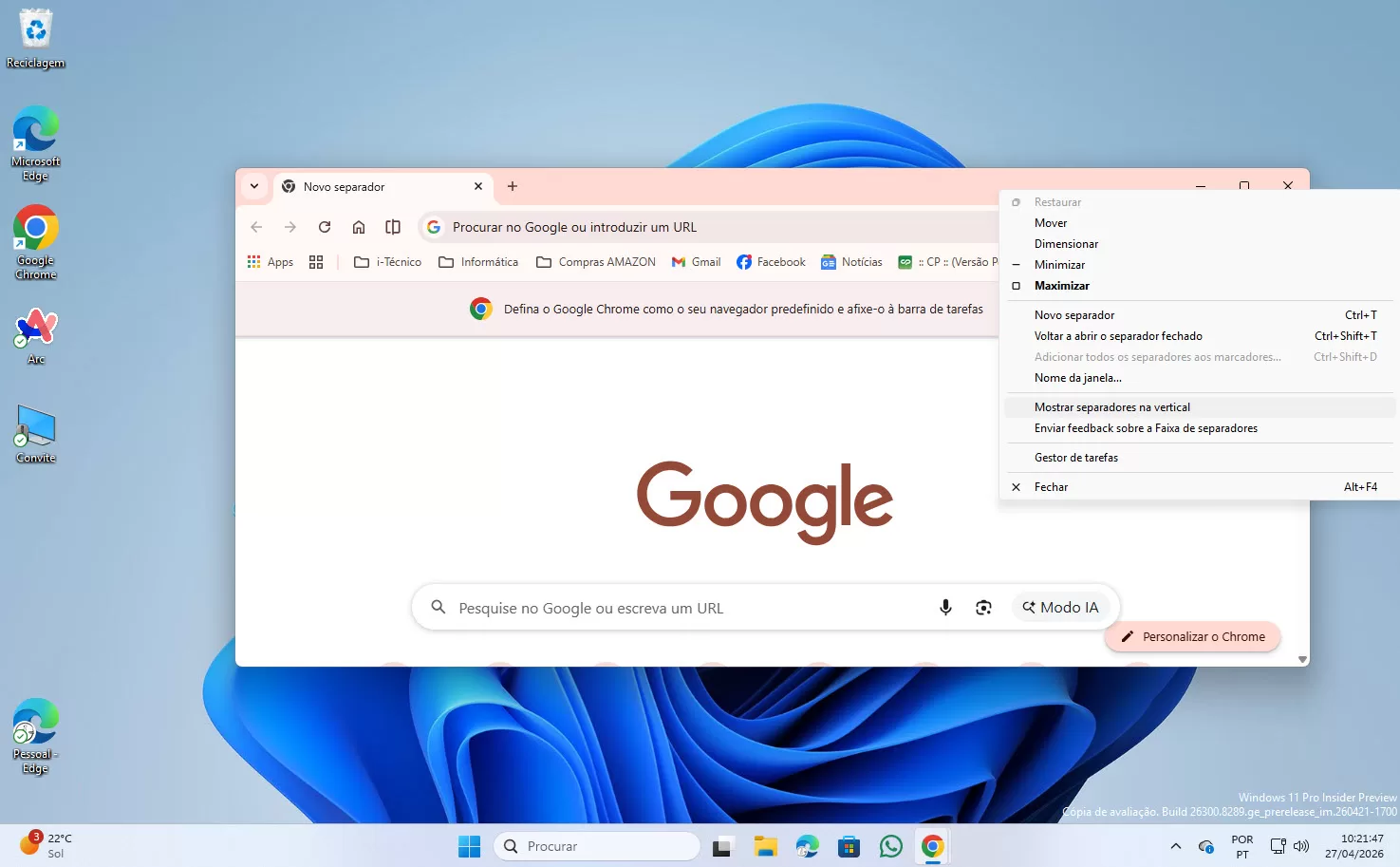 Chrome: Aprenda a colocar os separadores verticais
