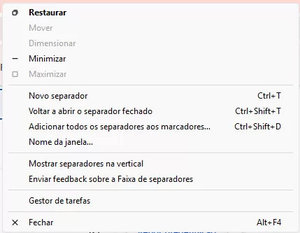 Clique com o botão do lado direito do rato na barra onde se encontram os separadores abertos do Chrome e os botões ➖🔲✖️ no canto superior direito do Chrome. Escolha um espaço vazio entre o último separador e esses 3 botões.